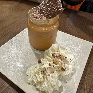 Pequeño tiramisu y chupitos de cortesia, perfecto!