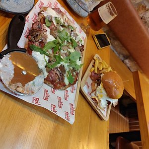 La comida es increíble, tuvimos una mezcla de bistec y hamburguesas que era absolutamente delicioso. Muy bonita joya escondida de un restaurante. Definitivamente no será decepcionado. 😊