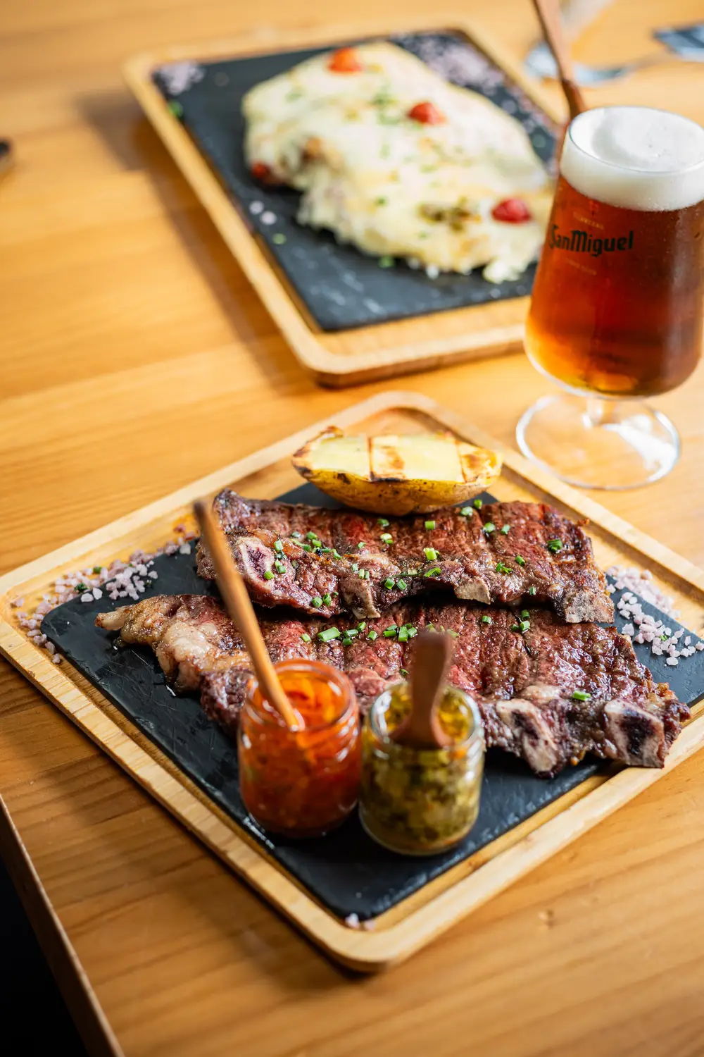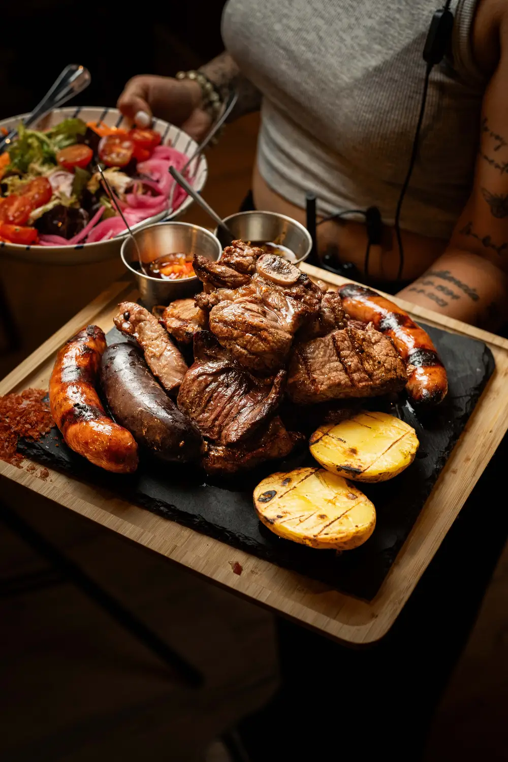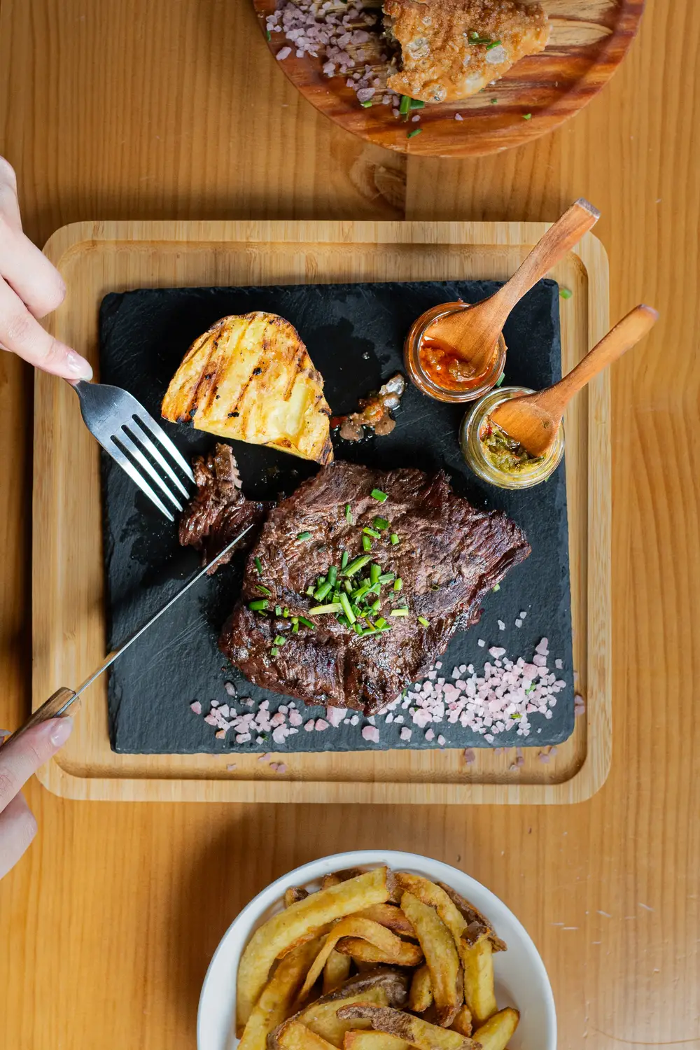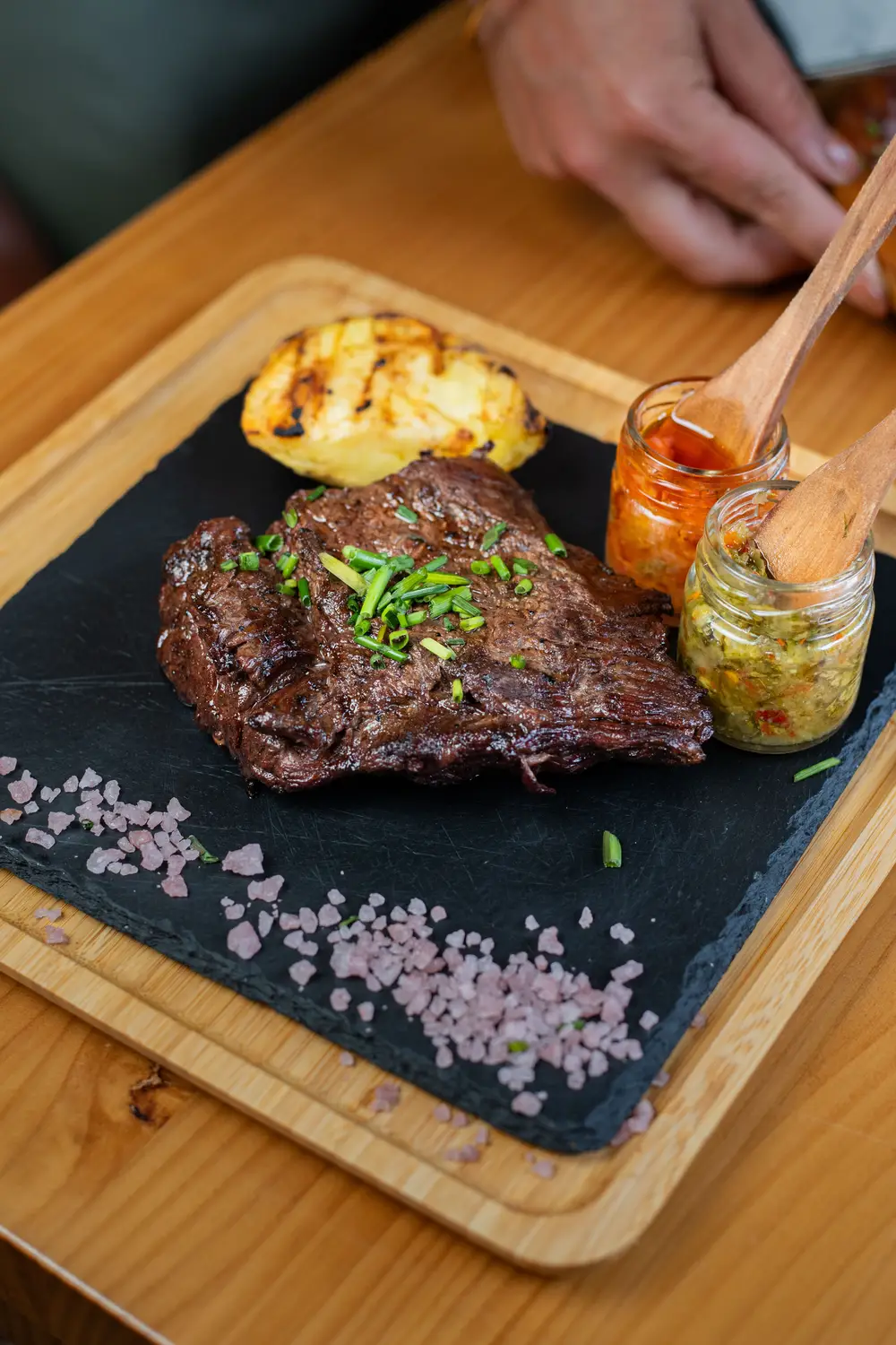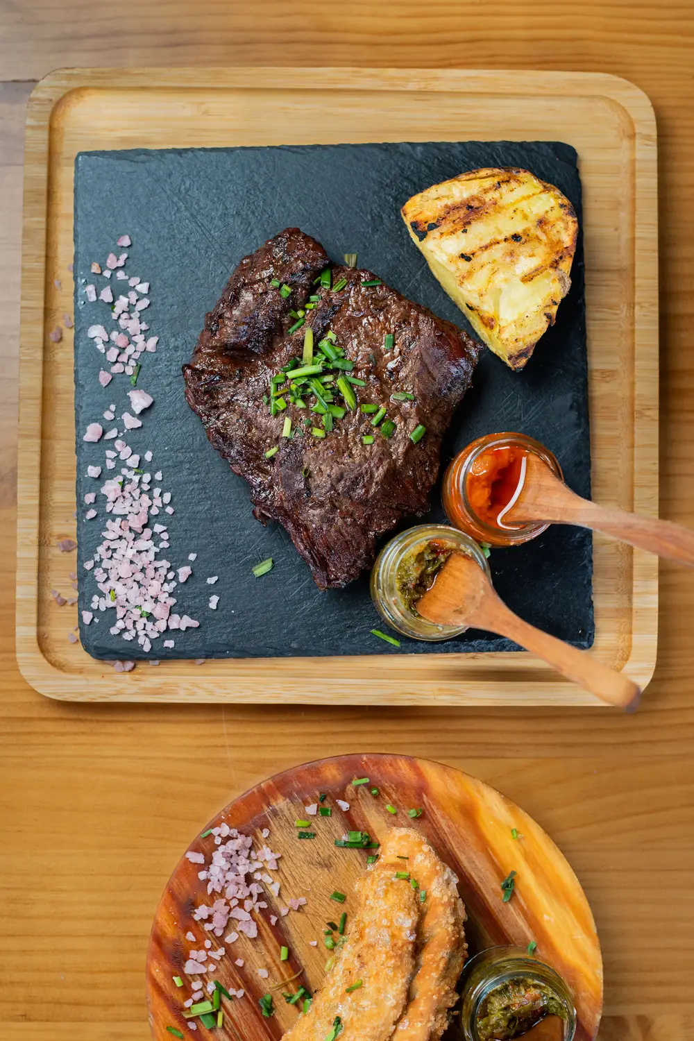Disfruta de nuestras carnes seleccionadas, cocinadas a la perfección, acompañadas de las mejores guarniciones tradicionales.