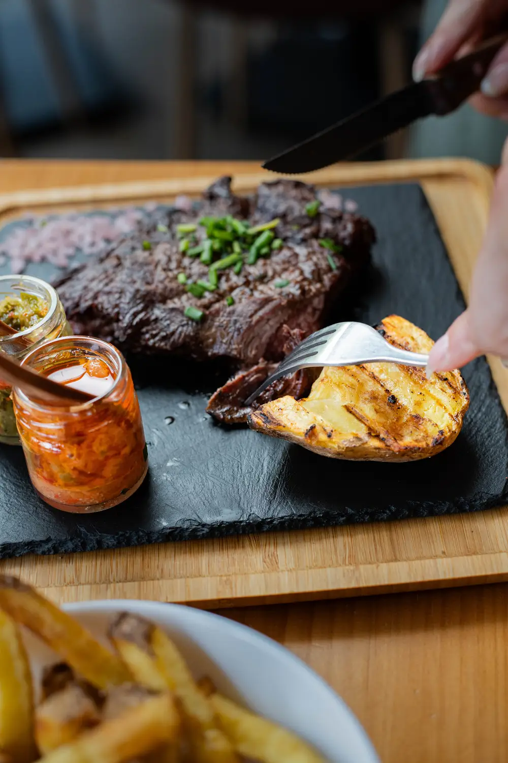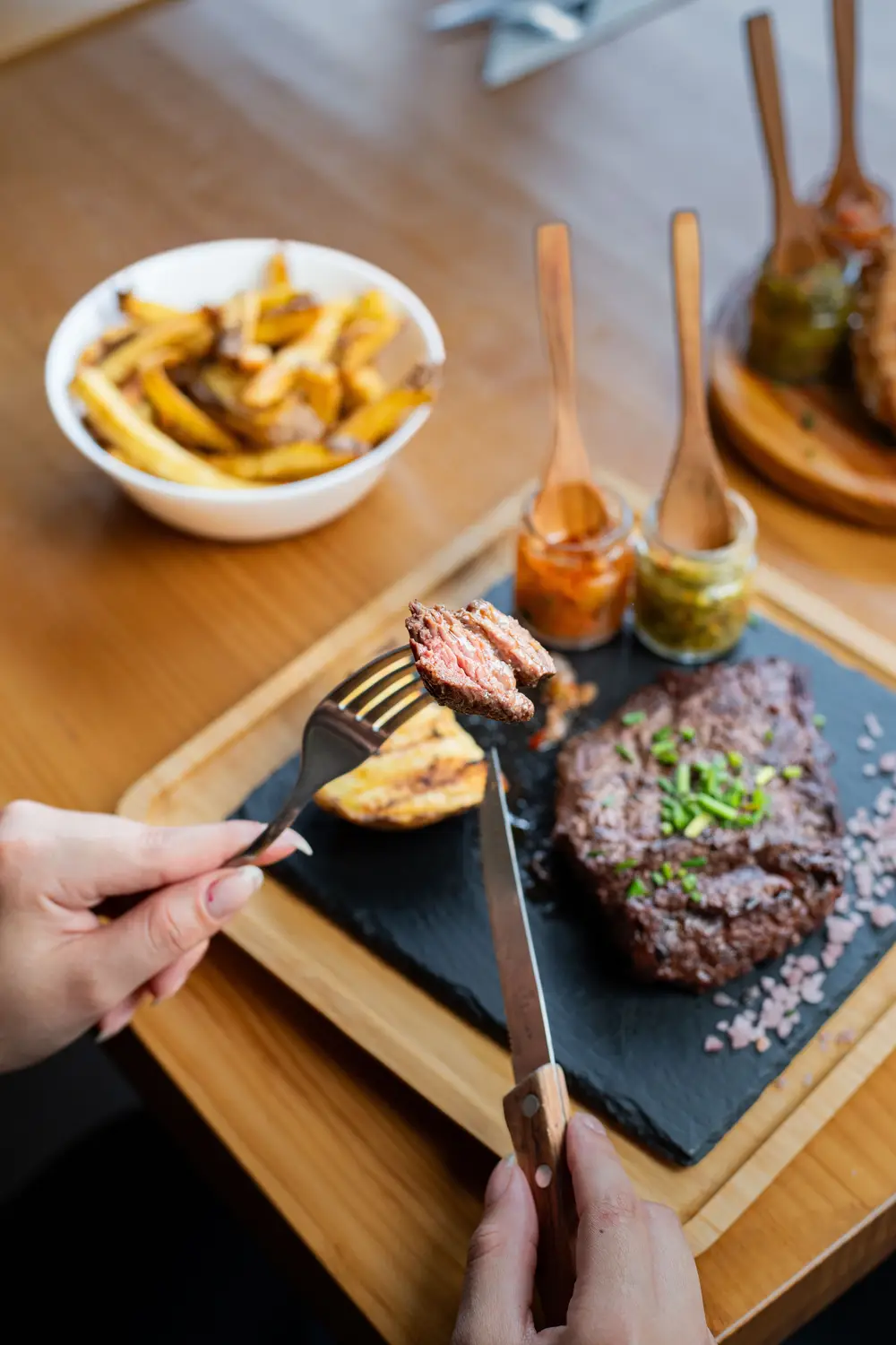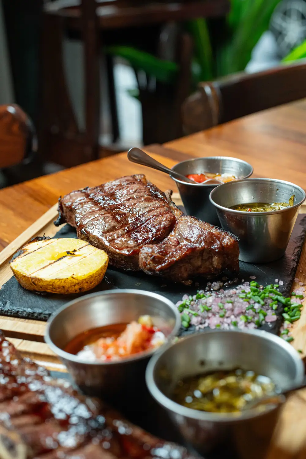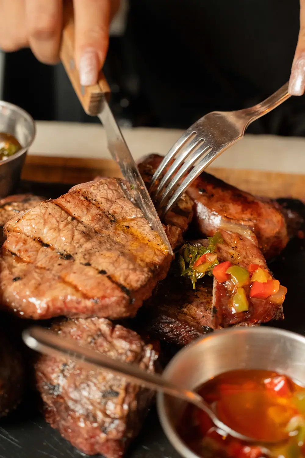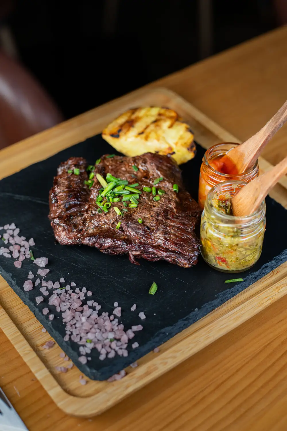 Disfruta de nuestras carnes seleccionadas, cocinadas a la perfección, acompañadas de las mejores guarniciones tradicionales.