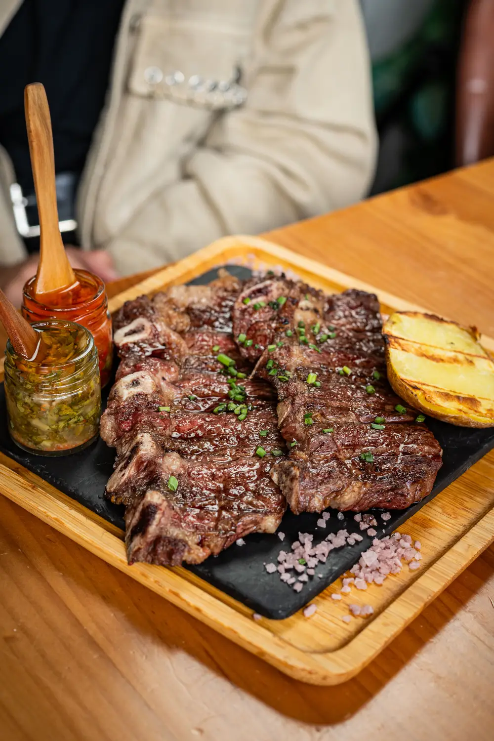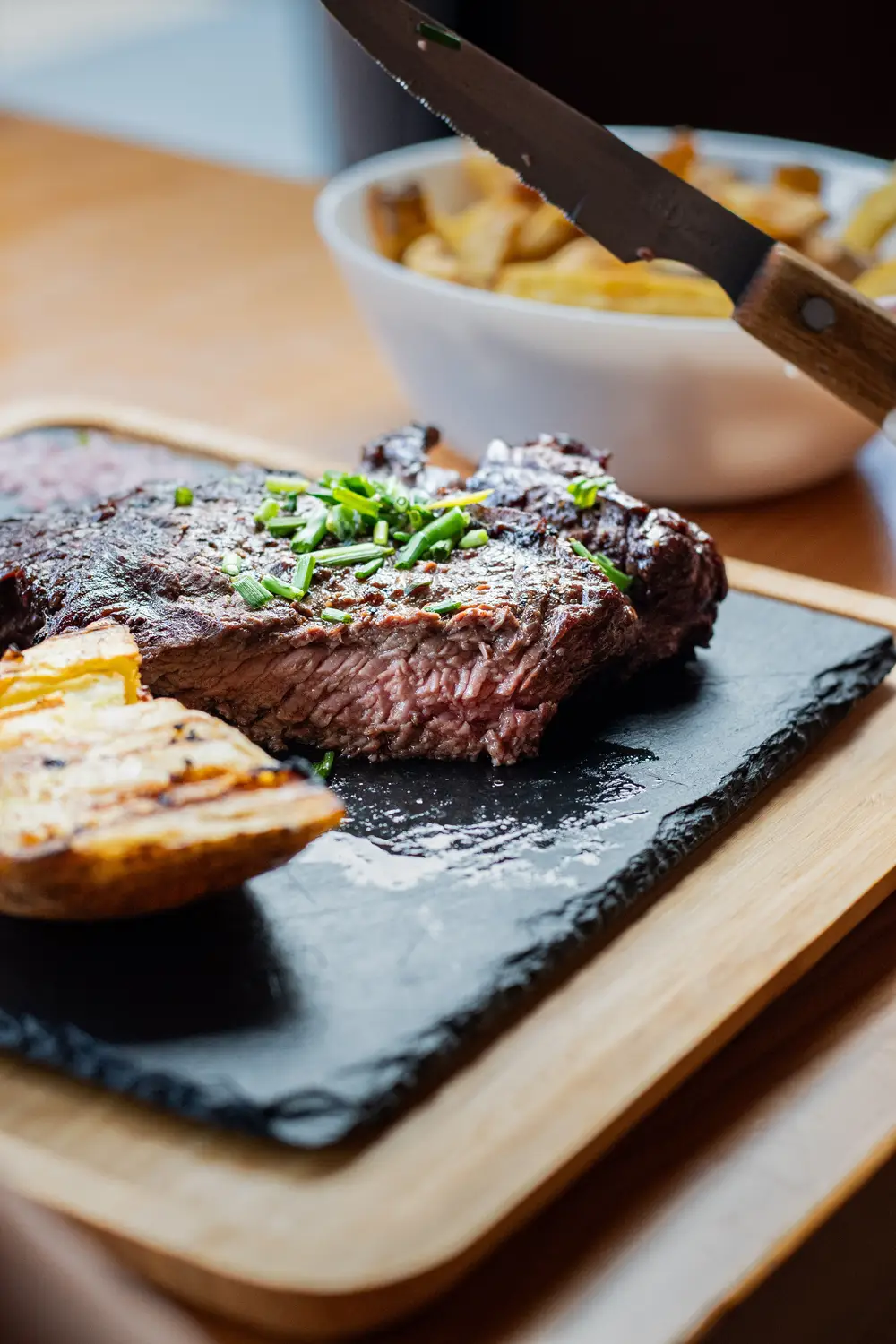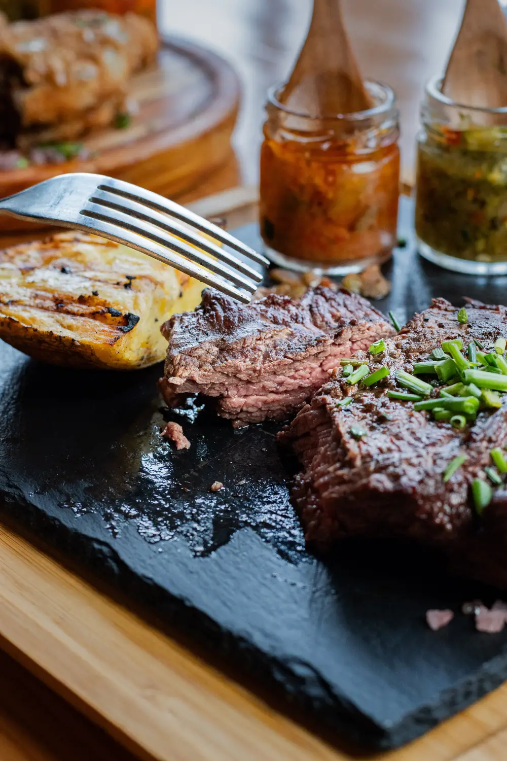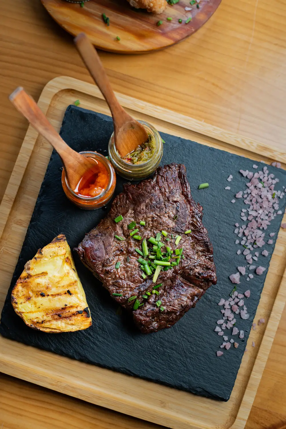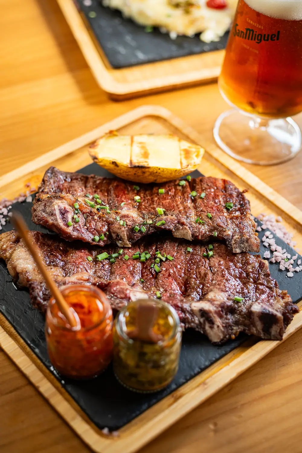 Disfruta de nuestras carnes seleccionadas, cocinadas a la perfección, acompañadas de las mejores guarniciones tradicionales.