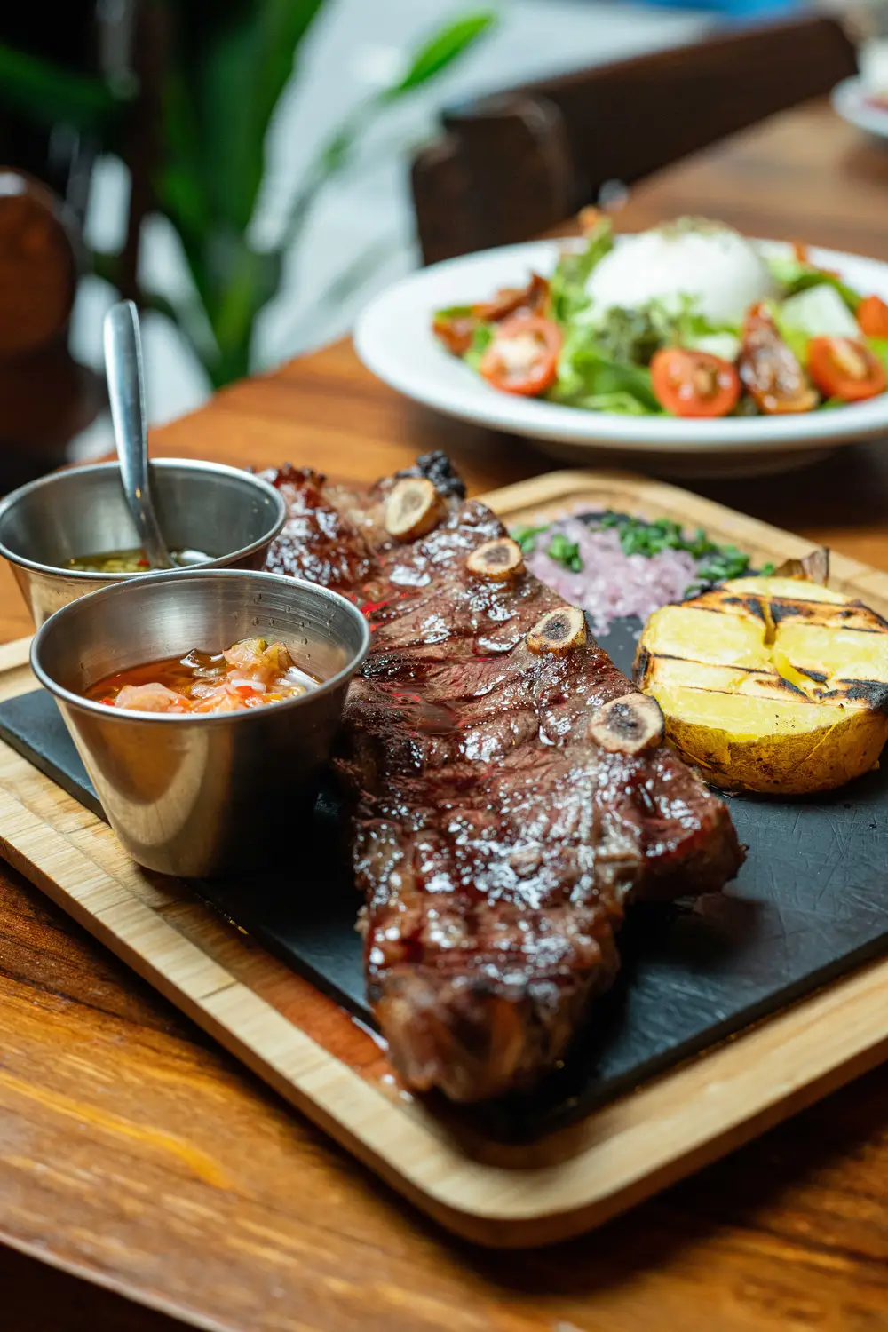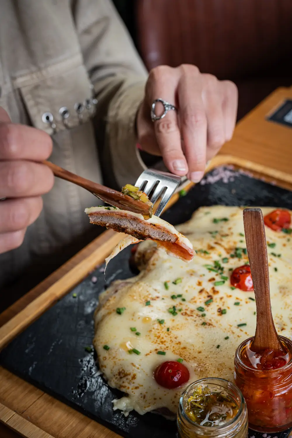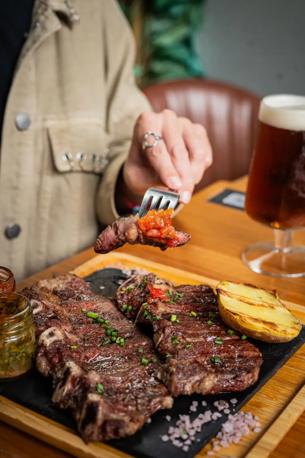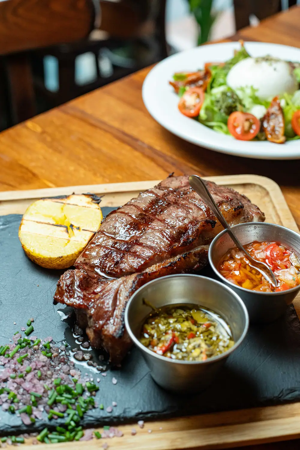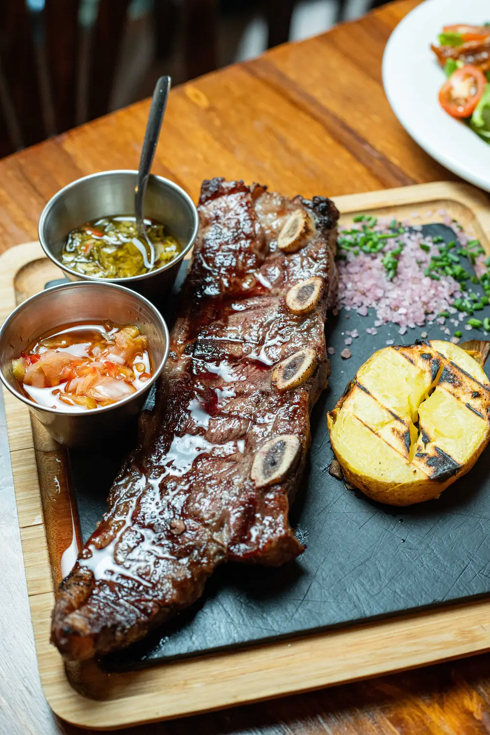 Disfruta de nuestras carnes seleccionadas, cocinadas a la perfección, acompañadas de las mejores guarniciones tradicionales.