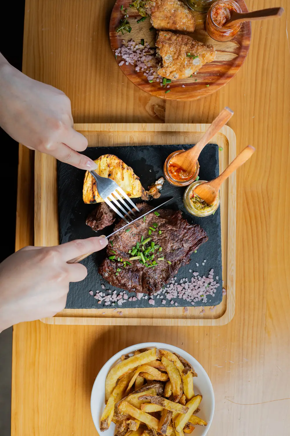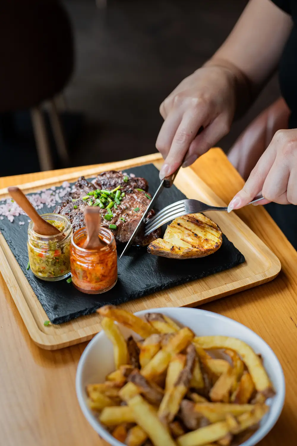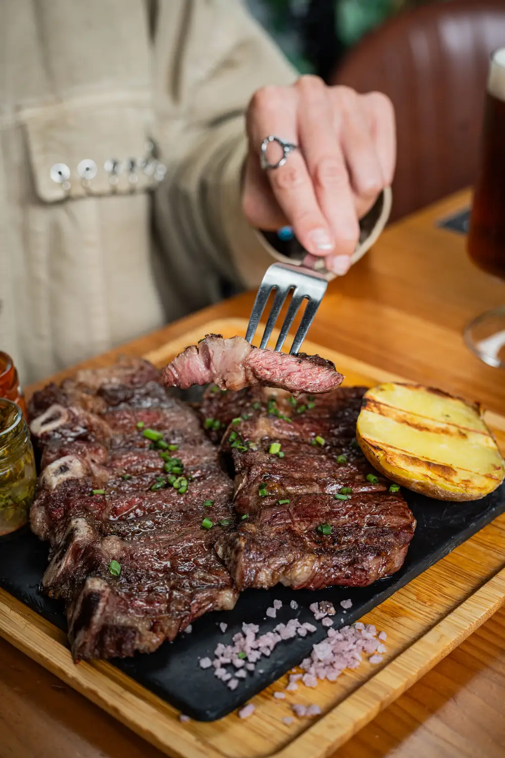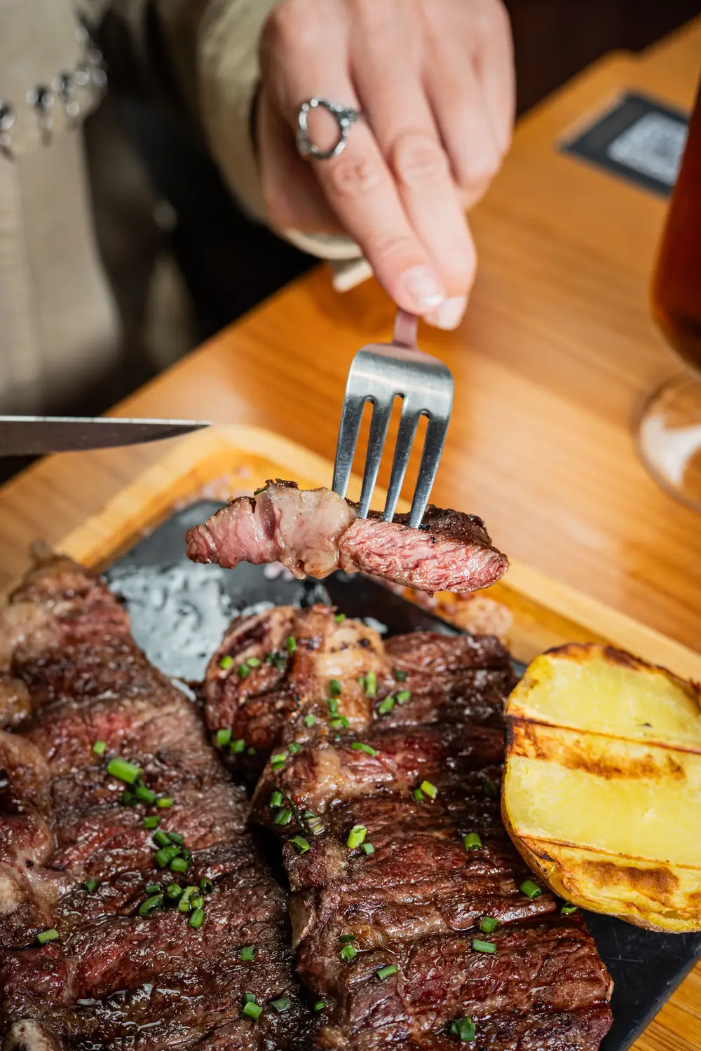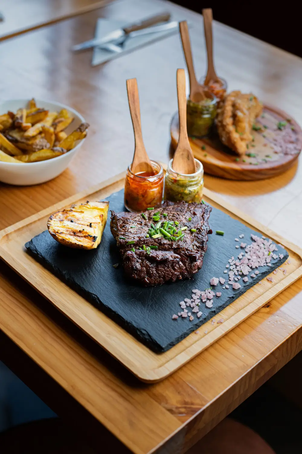 Disfruta de nuestras carnes seleccionadas, cocinadas a la perfección, acompañadas de las mejores guarniciones tradicionales.