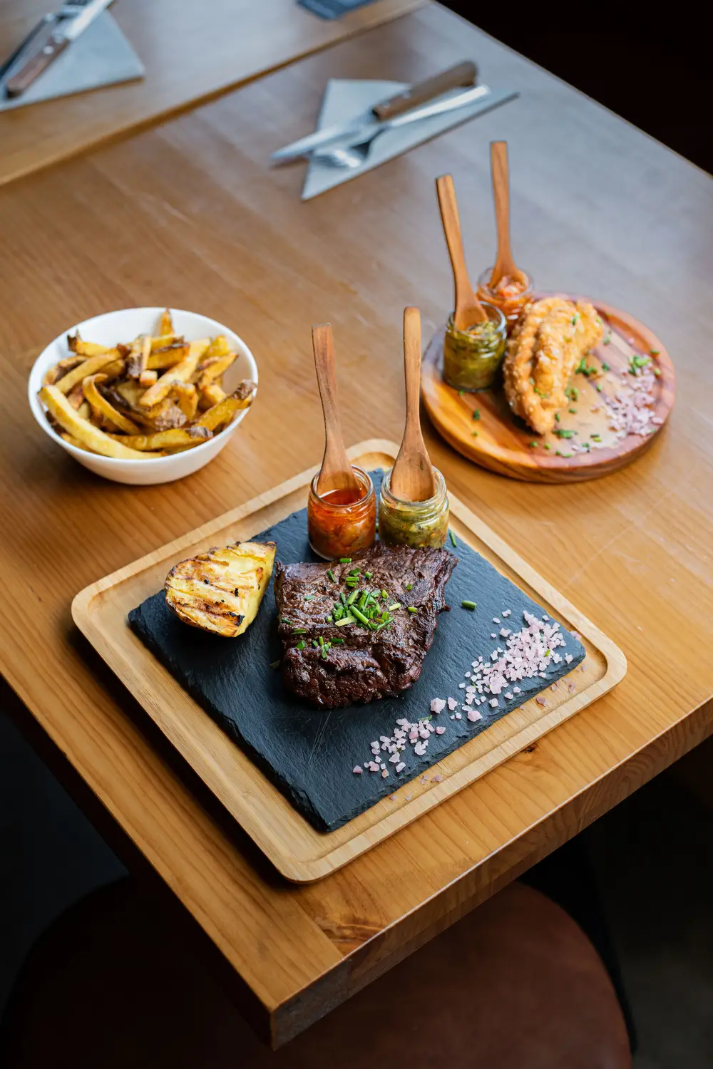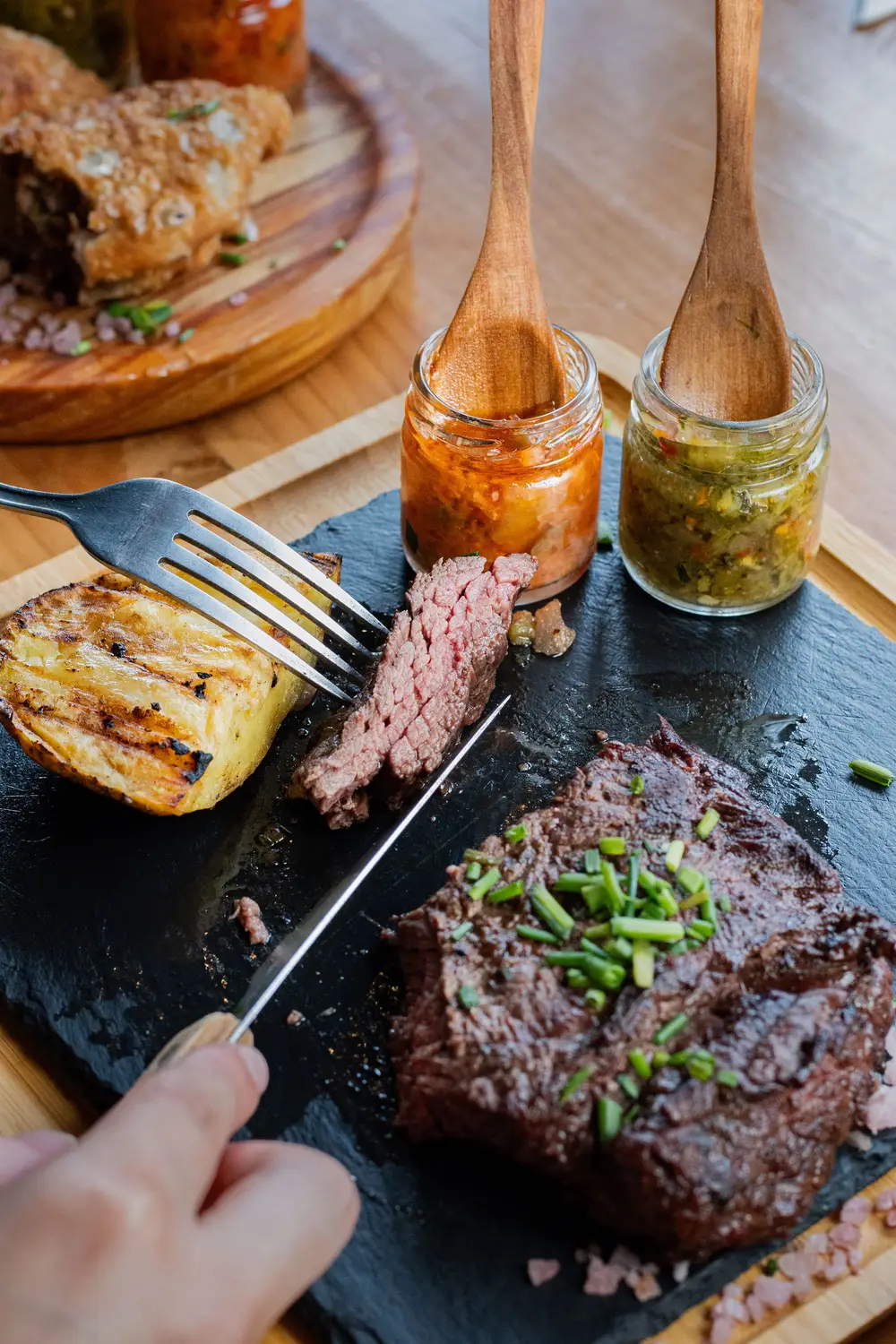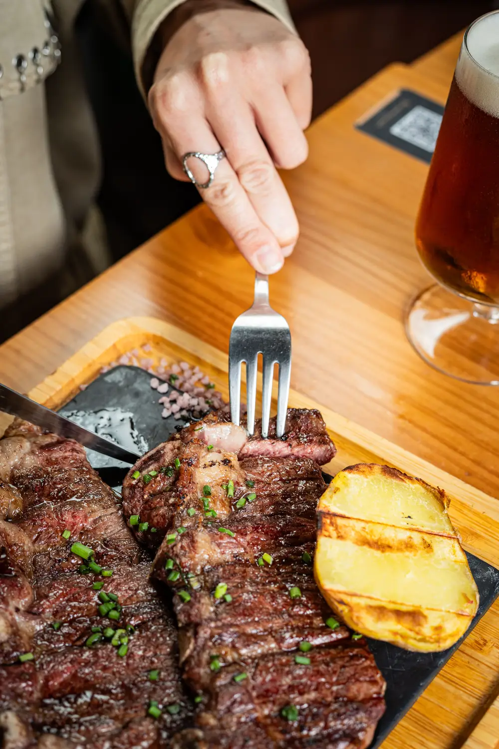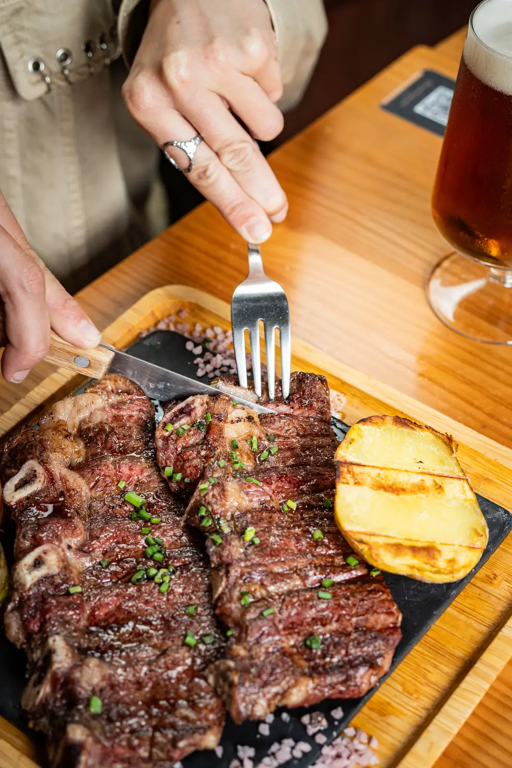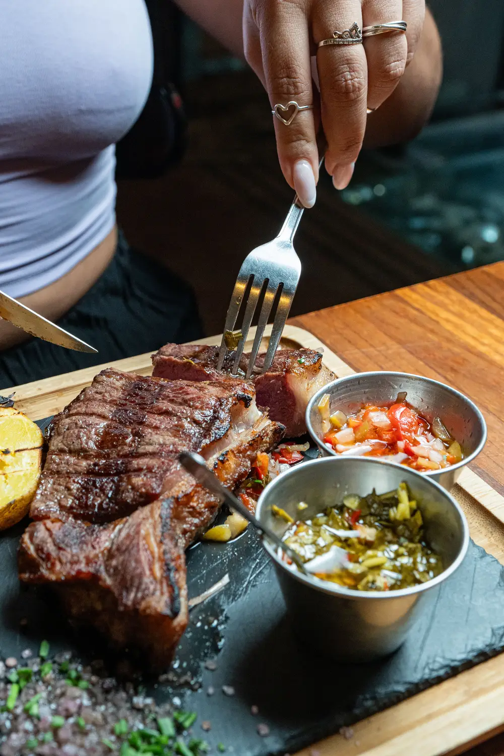 Disfruta de nuestras carnes seleccionadas, cocinadas a la perfección, acompañadas de las mejores guarniciones tradicionales.