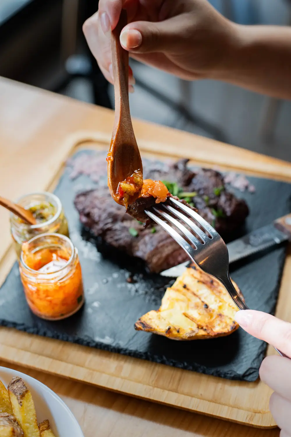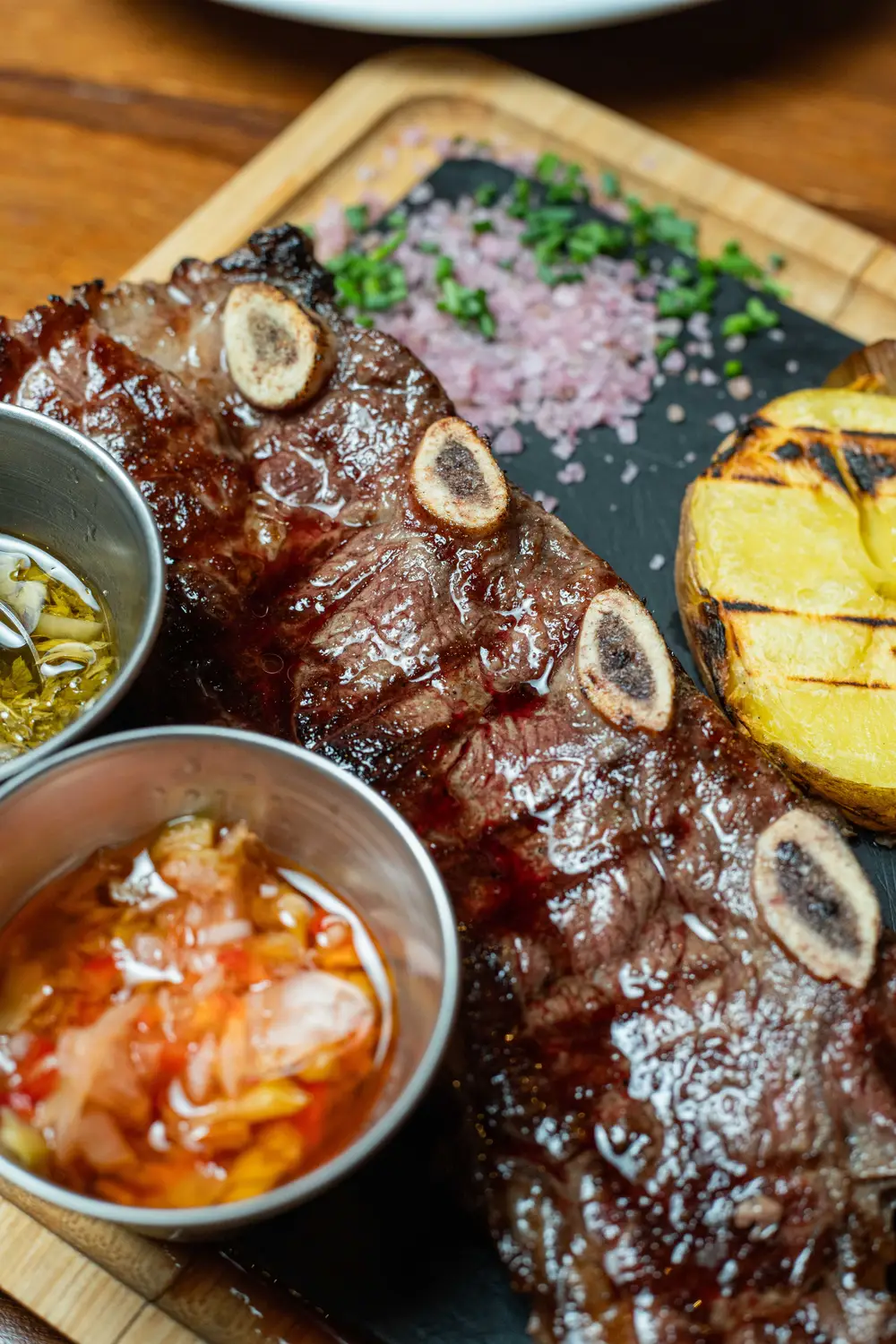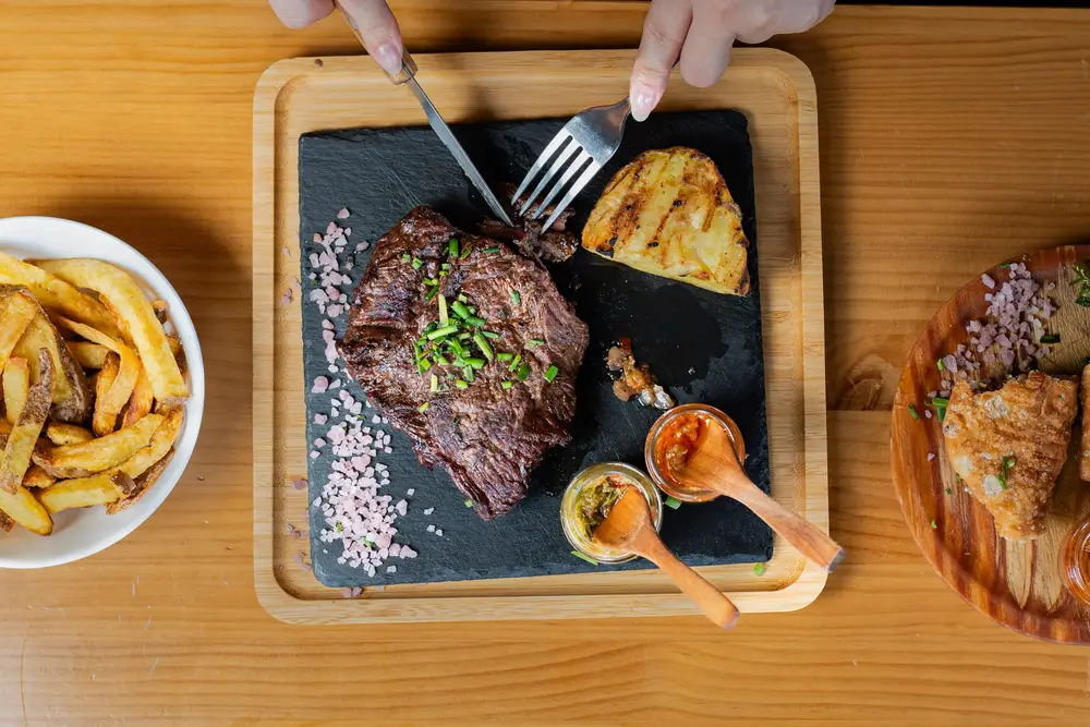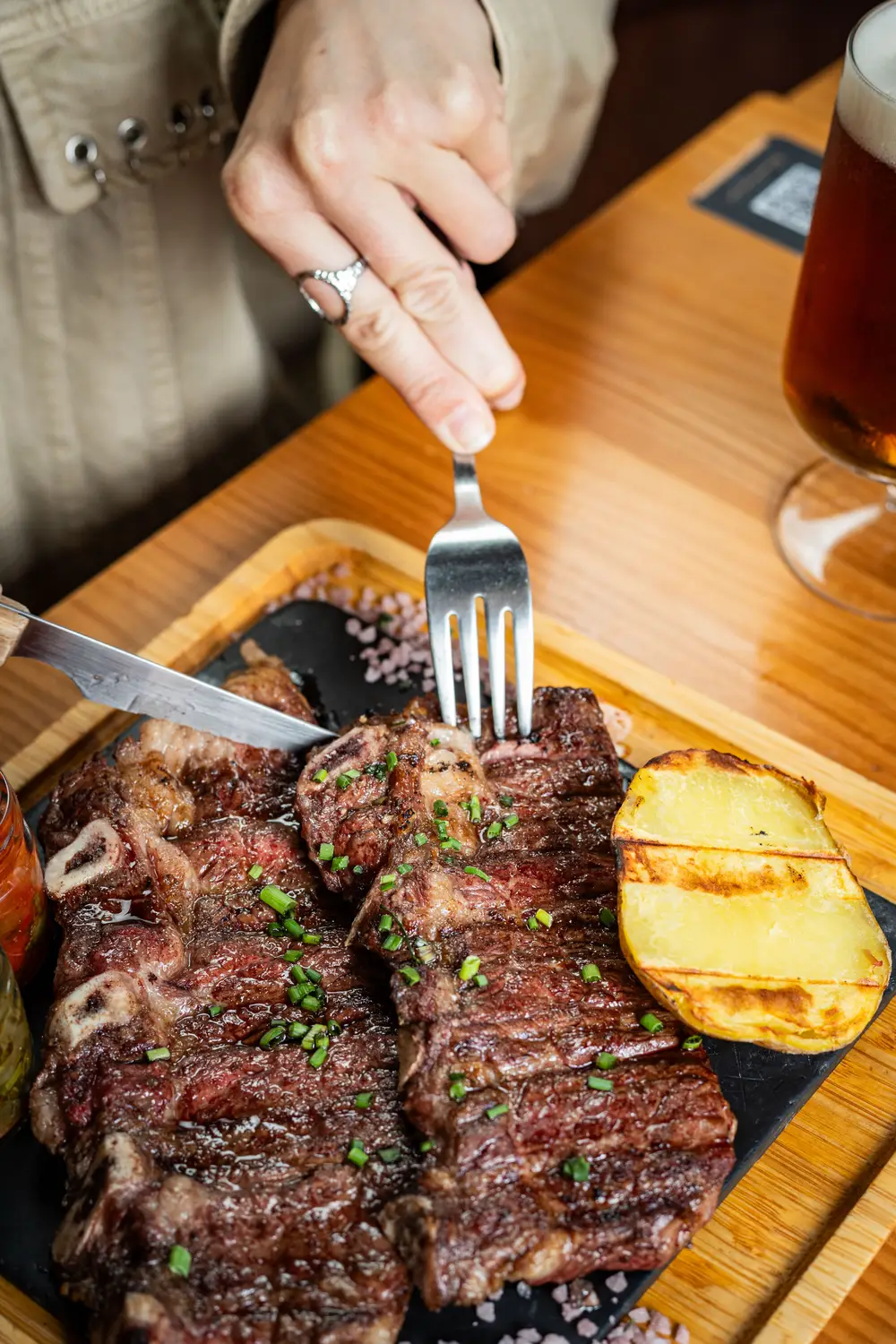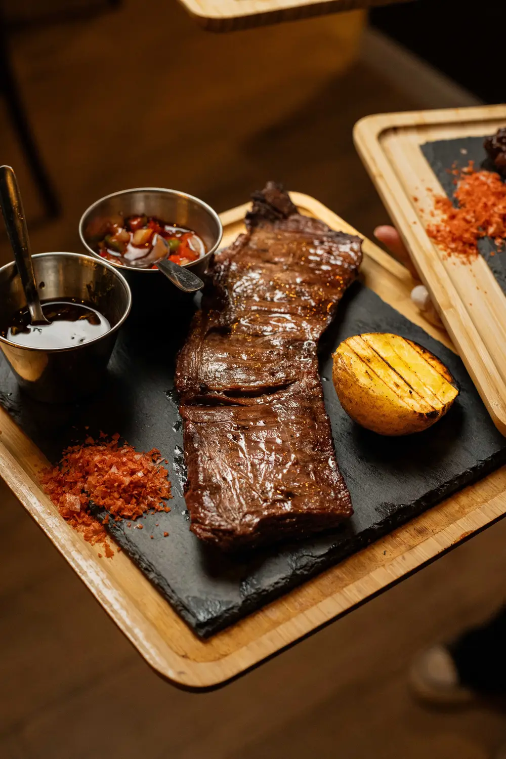 Disfruta de nuestras carnes seleccionadas, cocinadas a la perfección, acompañadas de las mejores guarniciones tradicionales.